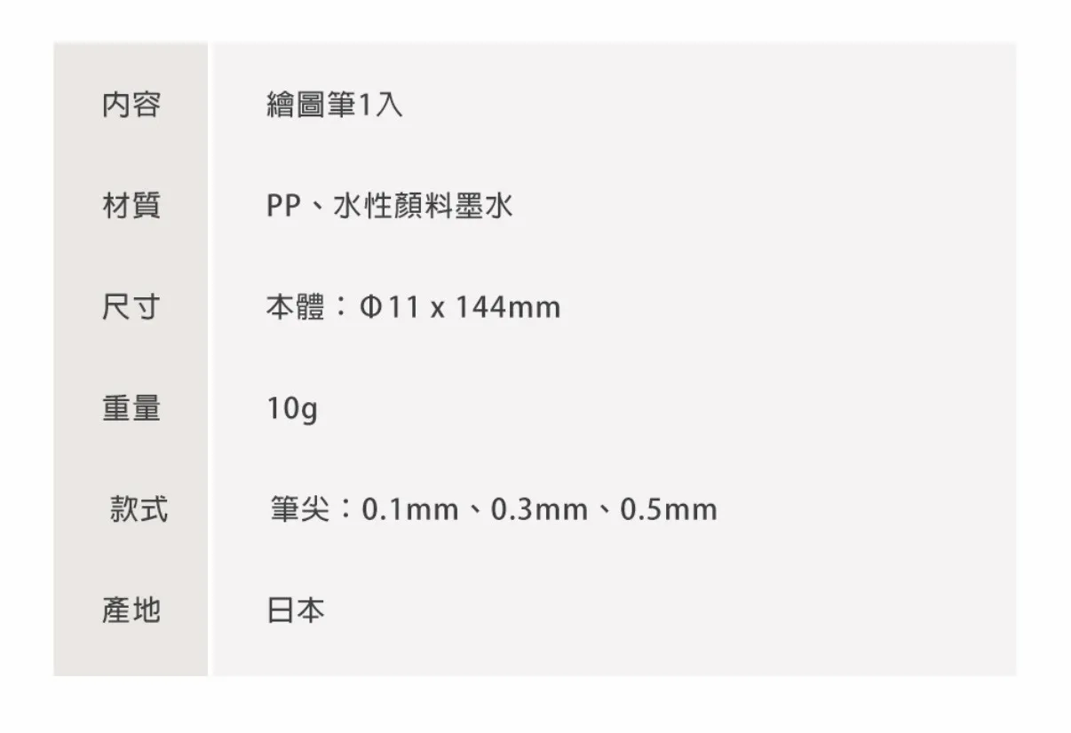 採用水性顏料墨水,耐水性,不易暈染,無論是文字、插畫,或與水彩搭配使用,都能安心運用,